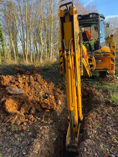 Trial pitting is a quick and cost effective method of investigating more than one area in a day. A wheeled or tracked excavator is taken to the site then used to excavate through the superficial deposits, while one of our geologists will monitor soil types and ground water. Samples are then taken for laboratory testing. The excavated soil is placed back in the correct order and compacted back to ground level.